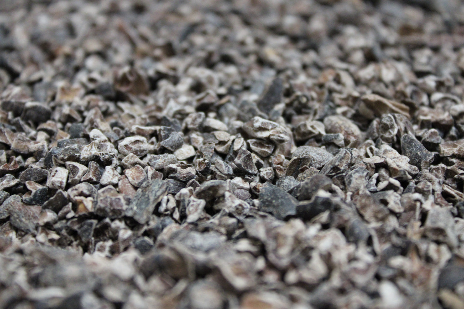 São grãos de cacau fermentados, secos, torrados e triturados.