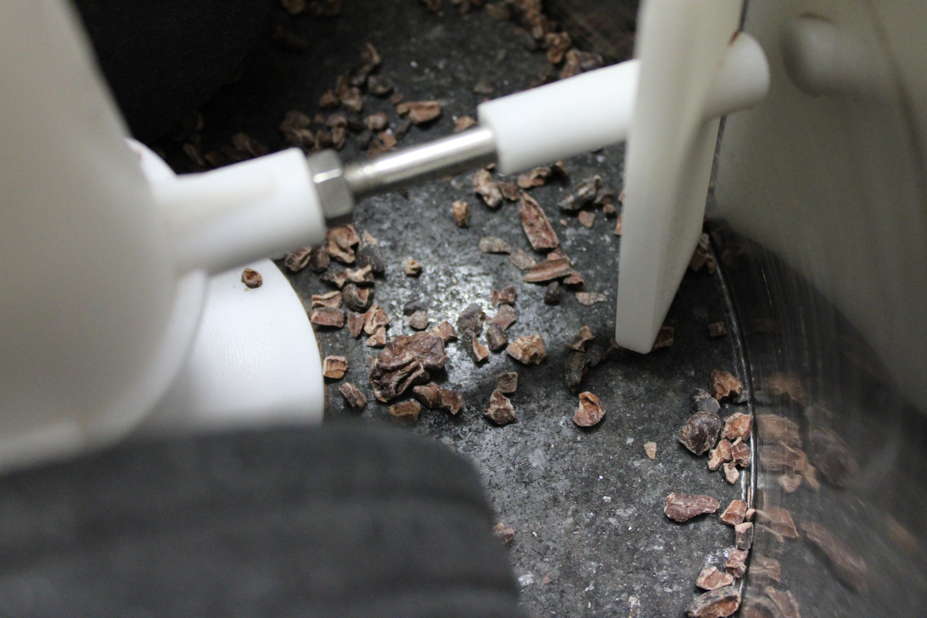 Os rolos de casca movem a massa de chocolate para frente e para trás em um processo que pode levar de algumas horas a sete dias.