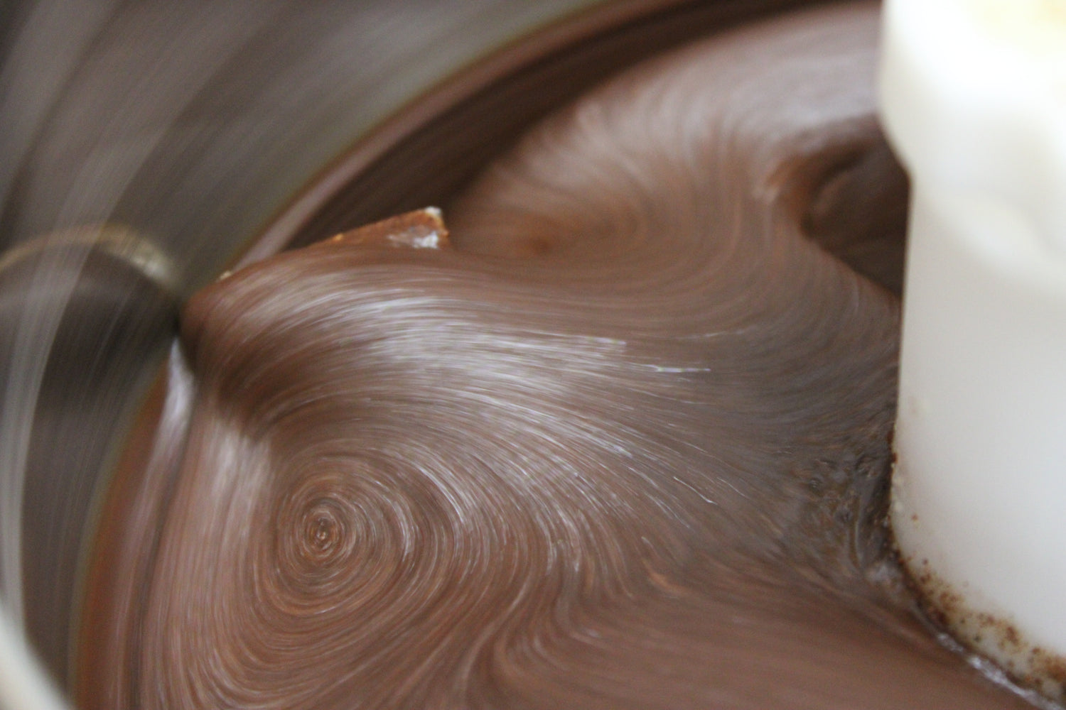 Essa técnica evita a separação entre a manteiga de cacau e outros sólidos de cacau, o que garante uma estrutura compacta e homogênea para o produto final.