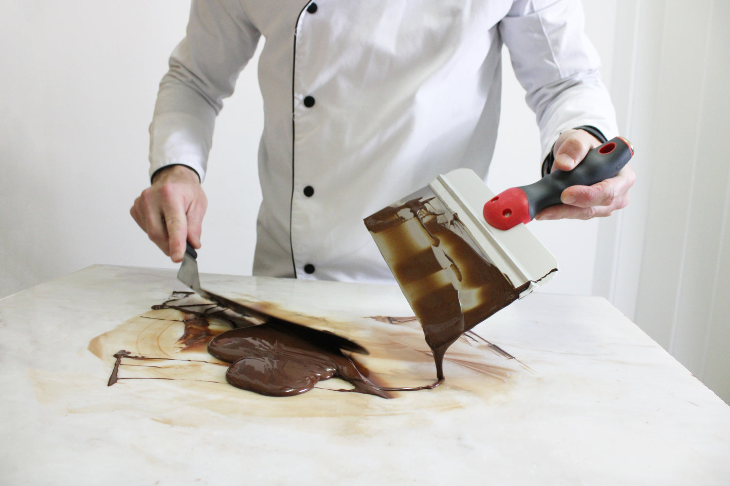 A temperagem é um processo lento e gradual de resfriamento do chocolate para que os cristais de manteiga de cacau se formem uniformemente.