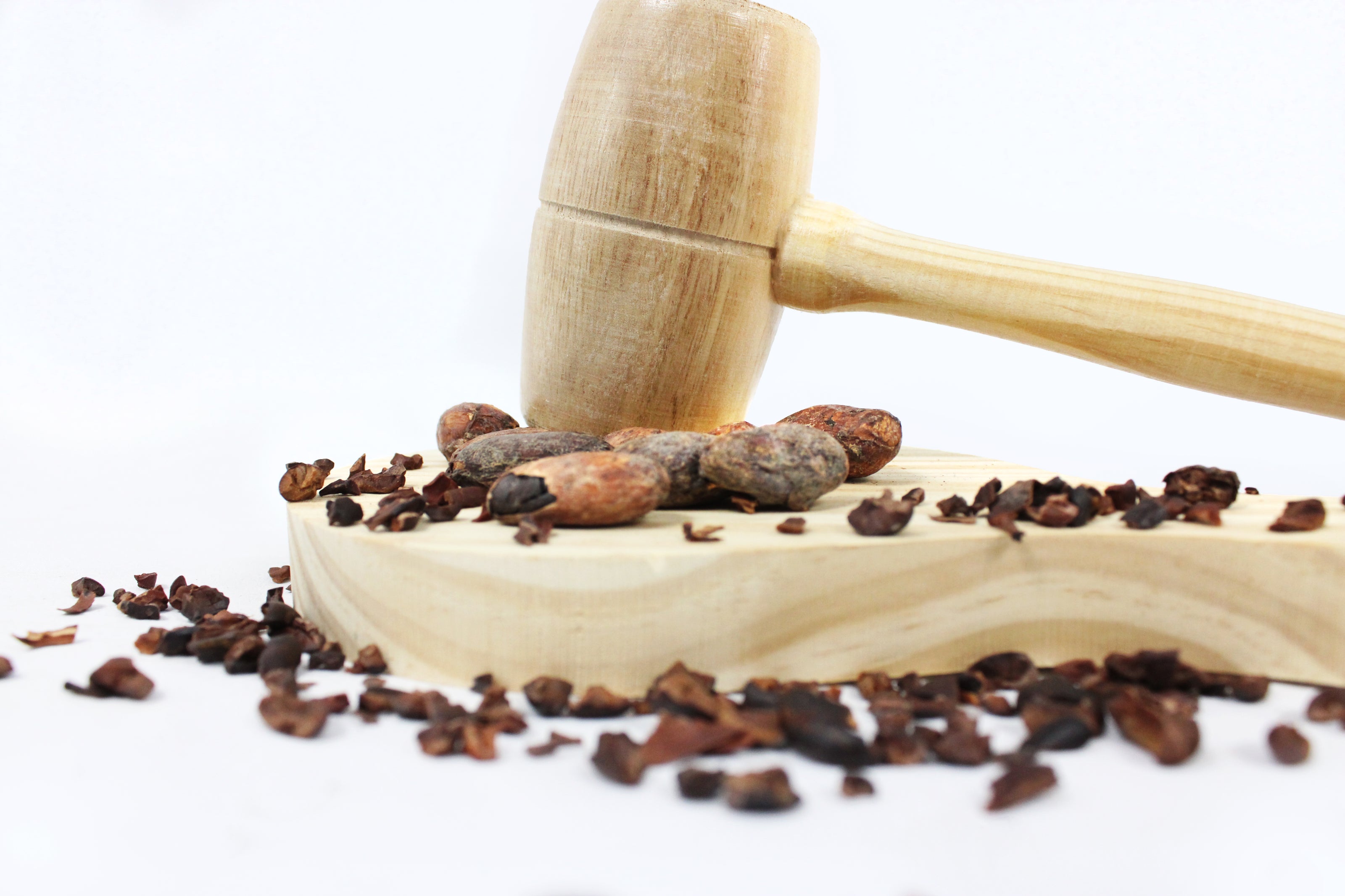 Processo artesanal de fabricação de chocolate, começando com os grãos de cacau inteiros até à produção final da tablete de chocolate, controlando todas as etapas para criar sabores únicos.